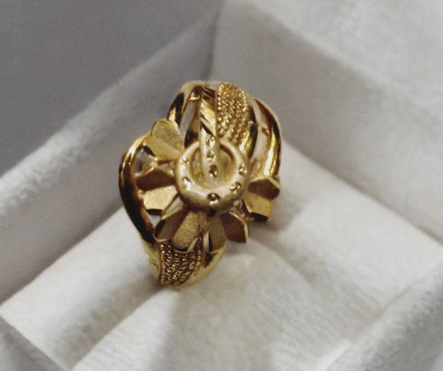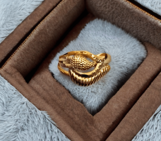 Elegant Leaf Carved Gold-Tone...